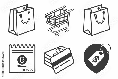 shopping, cart, bag, money, credit, card, receipt, price, tags, dollar, signs, sale, purchase, retail, commerce, payment, finance, economy, market, store, shop, buy, sell, consumerism, trade, icon, symbol, illustration, graphic