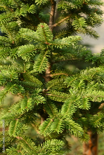 short needles of a coniferous tree close-up on a green background, texture of needles of a Christmas tree close-up, blue pine branches, texture of pine needles, green branches of a pine tree close-up