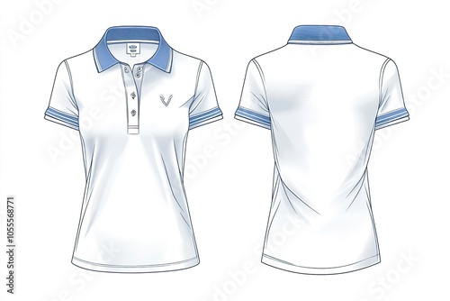 Short Sleeve polo shirt Technical drawing Fashion flat sketch front and back views vector illustration template ,Generative ai