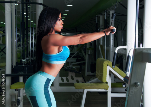 Shot of a young beautiful woman working out on cable machine at the gym