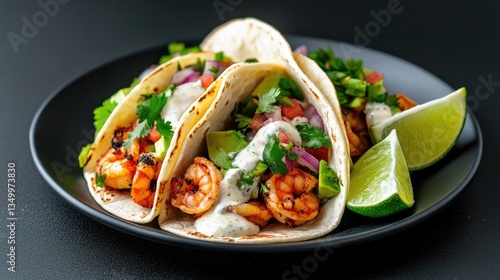 shrimp, taco, food, mexican, eatery, cookery, delicious, dinner, lunch, plate, black, dish, meal, appetising, tasty, healthy, grilled, seafood, avocado, salsa, cilantro, lime, sauce, closeup, image, receipe, cooking, deliciously, photo, picture, fresh, snack, tapas, epicure