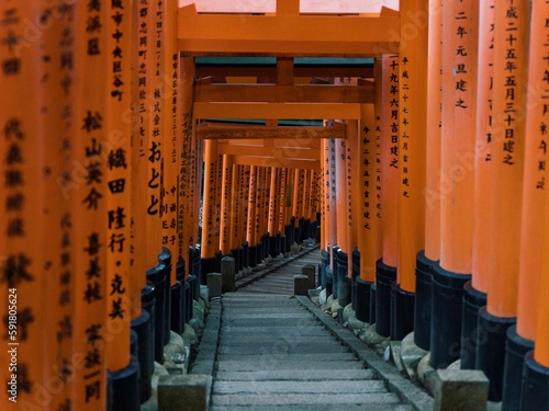 architecture, japan, building, temple, corridor, kyoto, torii, column, gate, column, red, japanese, shrine, asia, orange, tunnel, path, religion, landmark, travel, perspective, light