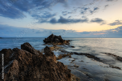Sicilian morning coastal landscape near Mondello, Palermo in spring Italy in Europe at sunrise