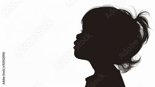 Side silhouette profile of a 2 year old child, isolated against a clean white background