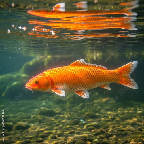 Side View of Colorful Koi Fish Swimming in Clear Water