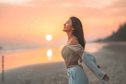 woman, freedom, relax, sunset, missy, happiness, happy, summer, people, joy, joyful, sunrise, silhouette, asian, enjoy, enjoyment, free, vacation, beautiful, sky, smile, tour tourism, holiday maker, adult, beach, break, carefree, cheerful, day, dusk, female, healthy, holiday, natural, nature, ocean, outside, peace, person, positive, sand, sea, sun, sunlight, sunshine, travel, trip