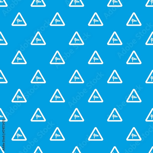Sign warning about cross wind from the left pattern seamless blue