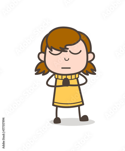 Silent Kid Doing Prayer - Cute Cartoon Girl Illustration