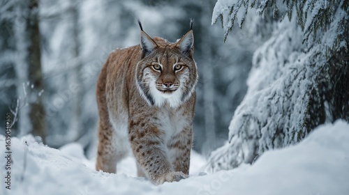 Silent Snowshoe Lynx in Pristine Winter Landscape A Stunning Wildlife Photograph Captures the Graceful Prowl of a Lynx