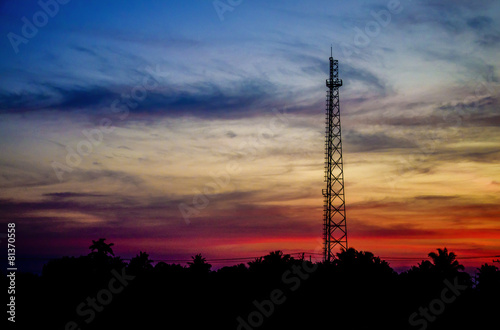 Silhouette Antenna transmission in sunset time
