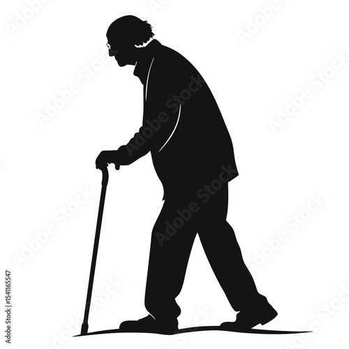 silhouette elderly man on white background