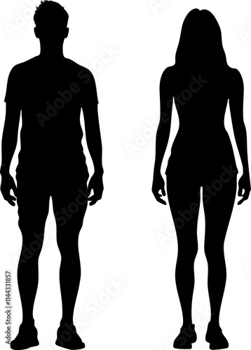 silhouette, man, woman, figure, standing, human, body, outline, black, white, couple, sex, character, design, vector, illustration, art, graphic, style, symbol, pose, people, shape, minimalist, abstract