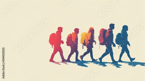 silhouette, people, day, international, annual, backpack, walking, group, illustration, adventure, travel, copy space, vibrant, colourful, journey, trekking, exploring, teamwork, graphic, digital artwork, silhouette, nature, lifestyle, backpacking, wanderlust, exploration, outdoors, activity, digital illustration, movement, minimalistic, hiker, trip, modern art, artistic, team, minimalist, graphic design, energetic
