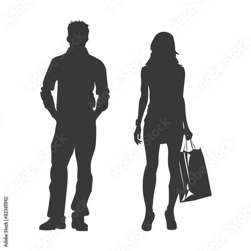 Silhouette man and women with Shopping bag full body black color only