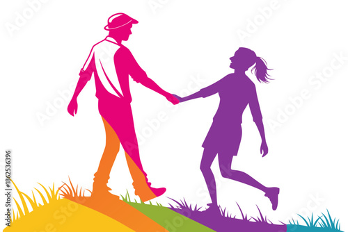 silhouette of a Couple holding hands vector illustration isolated on white background