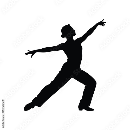 Silhouette of a graceful dancer in a dynamic pose with arms outstretched