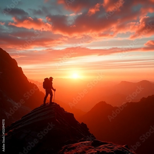 sunset, silhouette, mountain, sky, sunrise, people, sun, nature, hill, landscape, hiking, top, climbing, dusk, tree, evening, travel, hiker, person, photographer, sport, rock, cloud, freedom, cloud