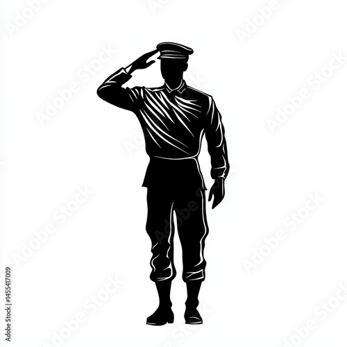 soldier, military, salute, uniform, officer, cap, silhouette, black-and-white, graphic, vector, design, artwork, respect, honour, patriotism, duty, service, symbol, icon, illustration, courage, strength, loyalty, dedication, army, armed forces, veteran, remembrance