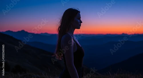 silhouette, woman, sunset, mountain, profile, calmness, evening sky, nature, beauty, landscape, serenity, golden hour, peaceful, solitude, horizon, chill, calmness, dusk, searching, exploration, stillness, atmosphere, scenery, breathtaking, scenic, adventure, freedom, countryside, relaxation, twilight, sunlight, natural beauty, captivating, girl, outdoors, emotional, panoramic view, colorful sky, dramatic sky, generative, ai