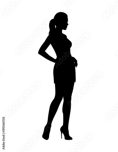 silhouette, woman, dress, heel, fashion, style, elegance, pose, figure, model, beauty, chic, glamour, classic, modern, design, art, illustration, graphic, icon, symbol, shape, outline, black, white, minimalist, simple, attractive, confident, poise, graceful, feminine, stylish, trend, contemporary, artwork, clip art, vector, image, isolated, portrait, profile, adult, person, female, body, slim, leg, hair