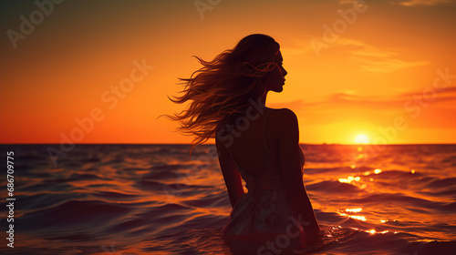 Silhouette of a woman on the beach.