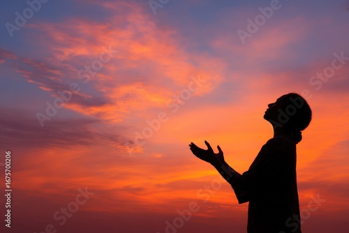 silhouette, woman, prayer, worship, god, sunset, sky, serene, nature, spirituality, faith, meditation, arms raised, profile, beautiful, moment, peace, calmness, evening, horizon, devotion, prayerful, background, colours, light, calm, life, gratitude, hope, silence, communication, connection, ambience, inspiration, belief, emotion, expression, joy, strength, beauty, atmosphere, scenery, dusk, divine, action