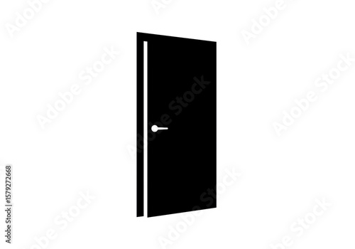 Silhouette of an Open Door with White Handle and Slight Perspective Tilt on White Background