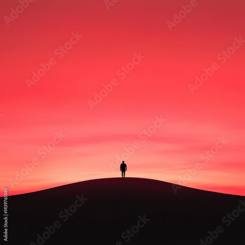 man, silhouette, hill, sunset, red, sky, alone, person, walking, adventure, landscape, dark, solitude, horizon, nature, travel, peace, calmness, serenity, minimal, simple, freedom, hope, inspiration, courage, strength, motivation, journey, path, evening