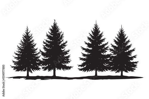 Silhouette of Pine Trees on Hill Landscape Vector Illustration
