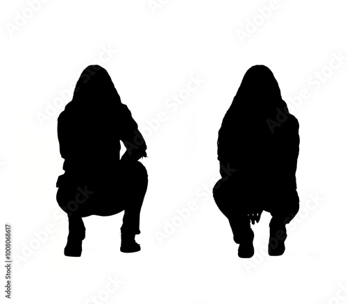 Silhouette of the same girl from the front and back, squatting