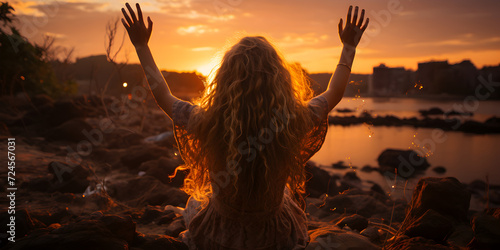 sunset, silhouette, beach, sea, woman, sun, water, ocean, sky, sunrise, summer, nature, beauty, dusk, person, evening, landscape, dawn, sunlight, horizon, body, sundown, mindfulness, lady, girl, back, sleeve, dress, skirt, yoga, cloud, orange, hand, long hair, mountain, light, bright, smile, arm, lake, shore, wind, light, healing, meditation, calm, relax, spirit, posture