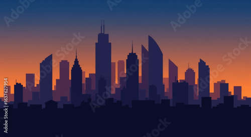 city, skyline, silhouette, building, architecture, urban, city landscape, sunset, dusk, dawn, evening, orange, blue, gradient, modern, contemporary, abstract, design, illustration, graphic, art, structure, tall, highrise, commercial, residential, office, metropolis, downtown, horizon, scenic, view, panorama, travel, tour tourism, destination, business, finance, real estate, development, construction, infrastructure, community, life, growth, prosperity, ambition, aspiration, dream