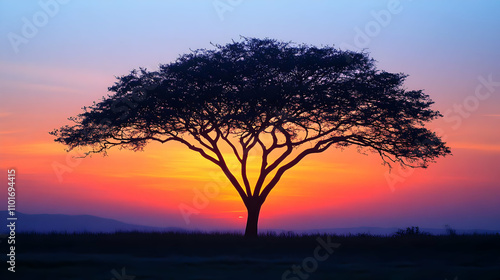 Silhouetted Tree Against Gradient Sunset Background for Epiphany Themes