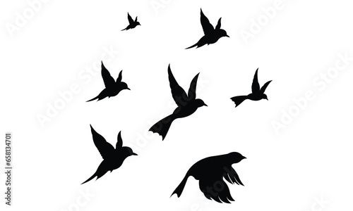 silhouettes of flock birds fly in sky