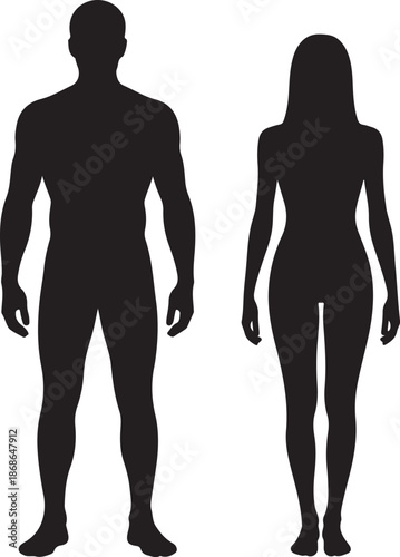 Silhouettes of men and women on a white background