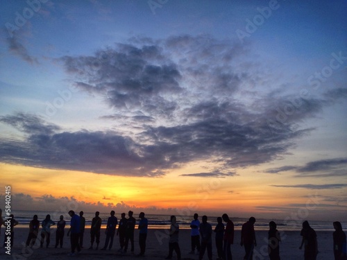 sillouete of people at the beach during sunset