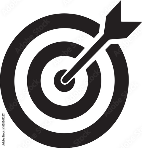 simple, black, white, icon, dart, bullseye, hitting, objective, target, goal, aim, precision, success, achievement, business, corporate, minimal, clean, graphic, design, sharpened, mark, strategy, plan, accuracy, arrow, outline, abstract, concept