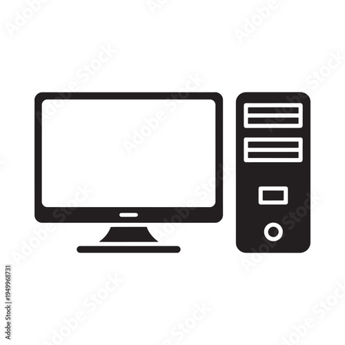 computer, monitor, tower, desktop, technology, digital, electronic, device, screen, display, black, white, icon, symbol, graphic, vector, outline, silhouette, minimalist, modern, office, work, home, cyberspace, datum, processing, hardware, software, machine, equipment, system, personal, innovation, communication, automation, connectivity, information, programming, network, artificial