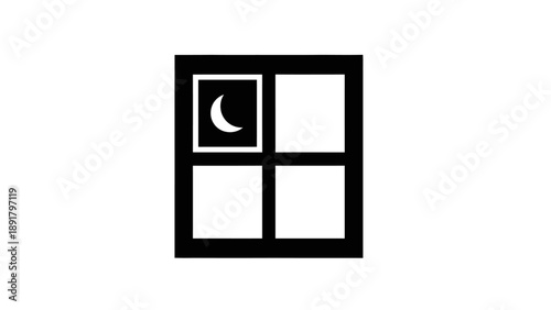 simple, black, white, illustration, window, crescent, moon, minimalist, design, graphic, symbol, icon, night, sky, shape, geometric, art, modern, clean, stylised, image, object, isolated, background, flat, vector, silhouette, lunar, phase, moonlight, night time, dark, light, contrast, basic, element, composition, visual, representation, symbolic
