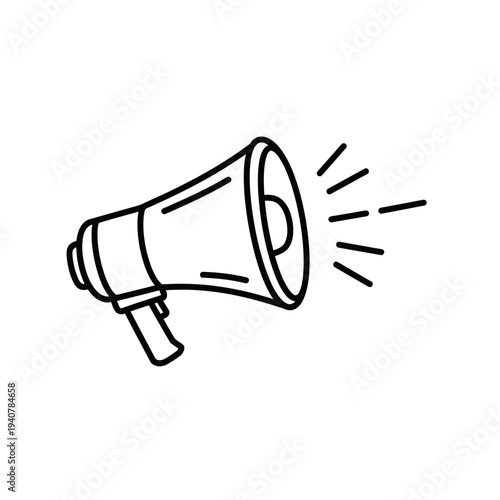 megaphone, bullhorn, loudspeaker, icon, vector, illustration, symbol, announcement, communication, protest, shout, speak, voice, sound, audio, broadcast, alert, message, news, public, attention, marketing, advertising, promotion, speech, rally, amplify, loud, noise, graphic, design, line, art, drawing, vignetting, doodle, simple, minimalist, outline, black, white, isolated, signs, pictogram, clip art, speaker, horn, yell, scream