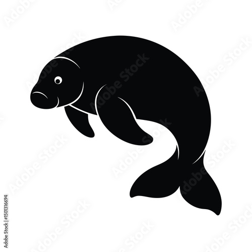 manatee, marine mammal, animal, silhouette, black, white, vector, illustration, graphic, design, wildlife, underwater, ocean, swimming, aquatic, nature, creature, cartoon, icon, symbol, logotype, simple, minimalist, isolated, clip art, cut-out, digital artwork, fish, sea, dolphin, water, whale, cute, marin, art, shark, mammal, blue, fun, bird, animal