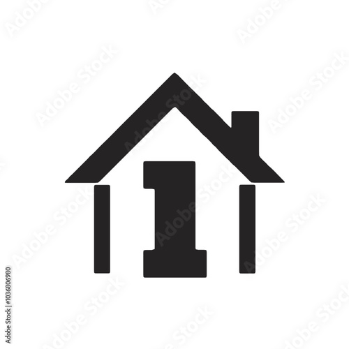 Simple black silhouette logo of an I letters house isolated on a white background, I letters house silhouette Design Vector, 3d house icon, home icon on black background, illustration of a house Logo