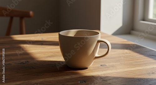 Simple Ceramic Coffee Cup on Textured Table with Natural Light
