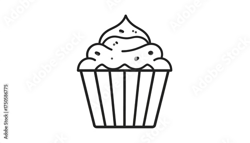 cupcake, cake, muffin, dessert, sweet, food, bakery, pastry, bake, baking, treat, snack, sugar, frosting, icing, sprinkle, cream, delicious, tasty, deliciously, confection, confectionery, patisserie, icon, symbol, signs, logotype, vector, illustration, drawing, vignetting, doodle, outline, graphic, design, element, isolated, white, background, simple, minimalist, monochrome, black, art, pictogram, culinary, receipe, party