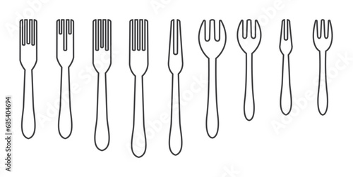 Simple fork icon in line form, various fork shapes vector illustration. Forks icon set.
