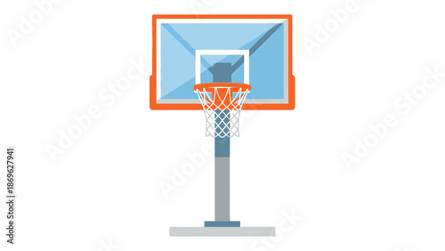 Simple Graphic Illustration of a Modern Basketball Hoop with Transparent Backboard and Stand on Isolated White Background