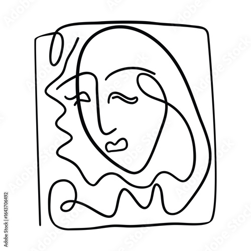 Simple hand drawn black trendy line portrait art. face abstract composition. black line drawing. monochrome print for wall art, clothes, textile. vector illustration