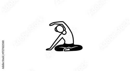 yoga, stretch, stretching, exercise, fitness, physical exercise, woman, female, person, posture, seated, pose, position, cross-legged, arm, hand, overhead, minimalist, simple, line, drawing, illustration, black, white, art, graphic, design, healthy, well-being, flexibility, body, movement, activity, silhouette, outline, figure, athletic, sport, lifestyle, wellness, practice, calm, serene, balance, meditation, mindful, healthy lifestyle, relaxation, peace