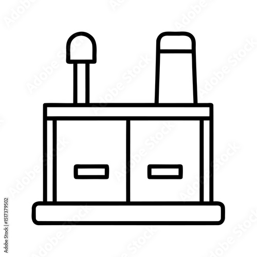factory, industry, manufacturing, production, plant, building, outline, line art, icon, illustration, vector, black-and-white, minimalist, simple, modern, design, energy, environment, pollution, technology, urban, business, concept, symbol, signs, graphic, isolated, power, structure
