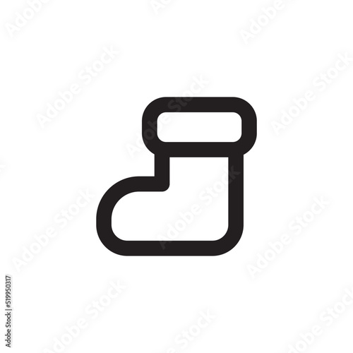 Simple Santa sock icon, Vector outline icon on white background.